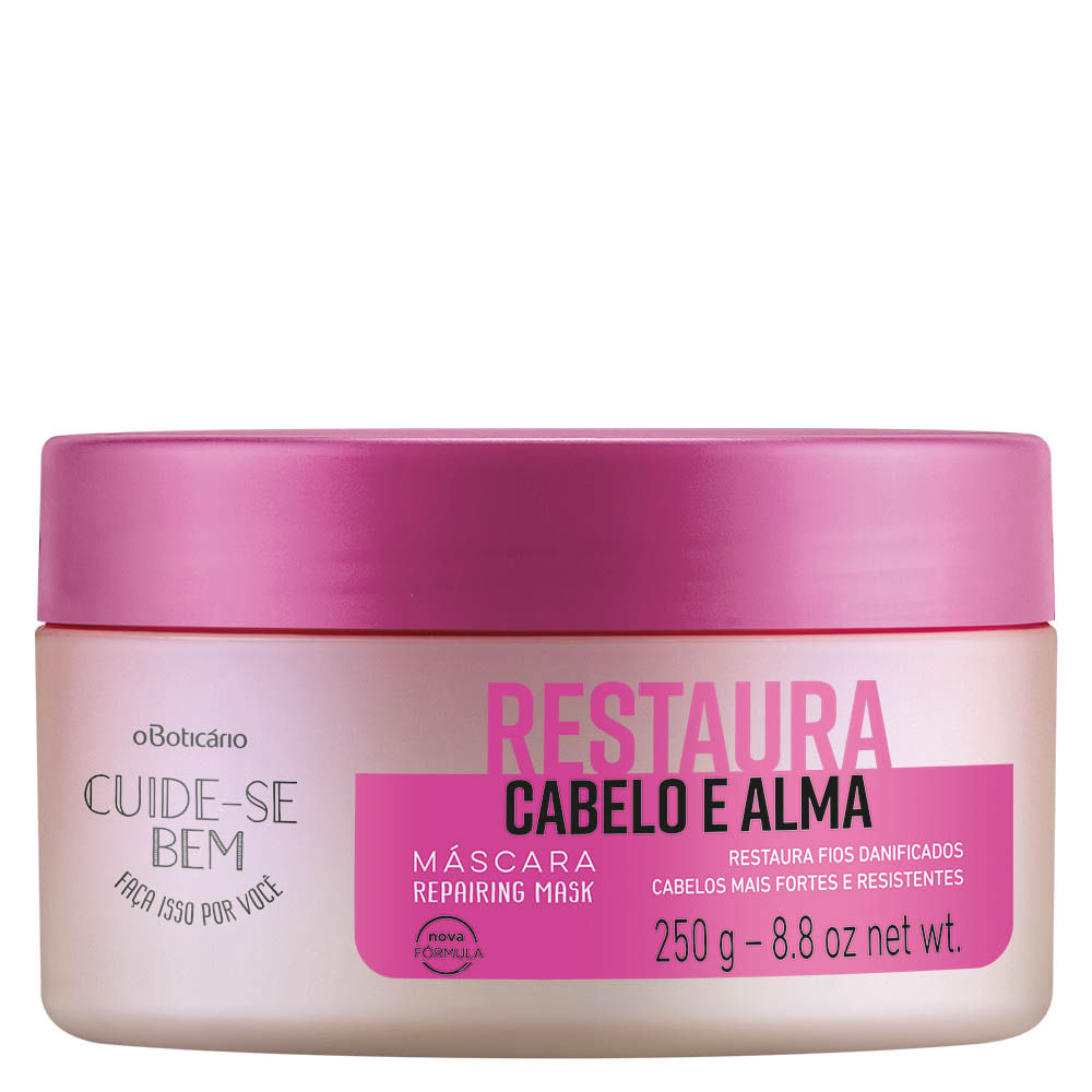 A máscara capilar Cuide-se Bem Restaura Cabelo e Alma trata profundamente devolvendo a massa capilar perdida e a densidade ideal aos fios.