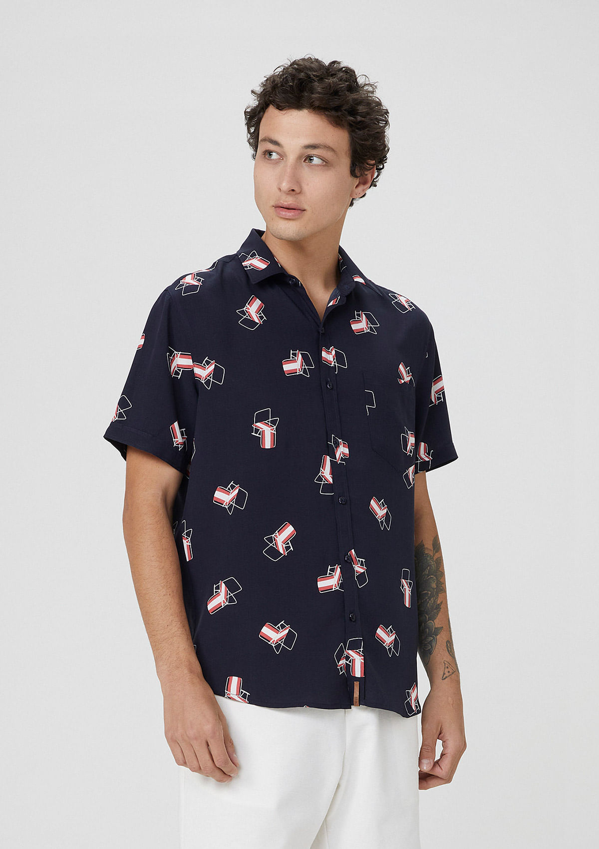 31% OFF - Camisa Masculina Comfort Em Viscose Estampada - Azul Marinho